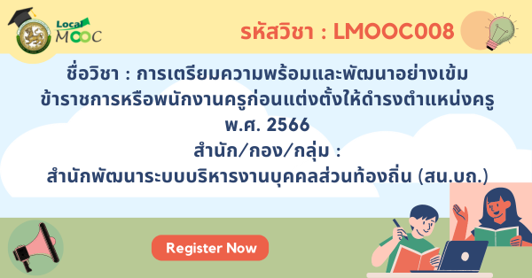 LMOOC008 : การเตรียมความพร้อมและพัฒนาอย่างเข้มข้าราชการหรือพนักงานครู ก่อนแต่งตั้งให้ดำรงตำแหน่งครู พ.ศ. 2562