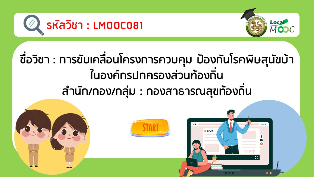 LMOOC081 : การขับเคลื่อนโครงการควบคุม ป้องกัน โรคพิษสุนัขบ้าในองค์กรปกครองส่วนท้องถิ่น