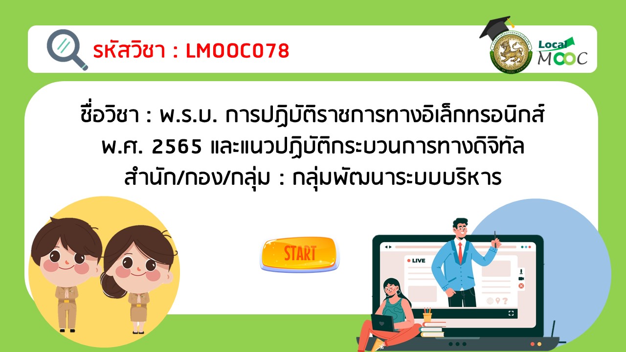 LMOOC078 : พ.ร.บ. การปฏิบัติราชการทางอิเล็กทรอนิกส์ พ.ศ. 2565 และแนวปฏิบัติกระบวนการทางดิจิทัล