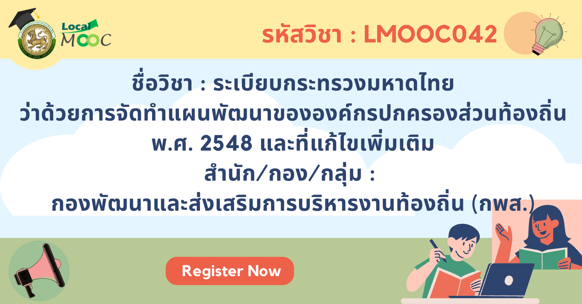 LMOOC042 : ระเบียบกระทรวงมหาดไทยว่าด้วยการจัดทำแผนพัฒนาขององค์กรปกครองส่วนท้องถิ่น พ.ศ. 2548 และที่แก้ไขเพิ่มเติม